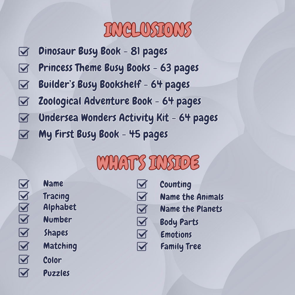 This amazing bundle includes six unique busy books, each packed with engaging activities: